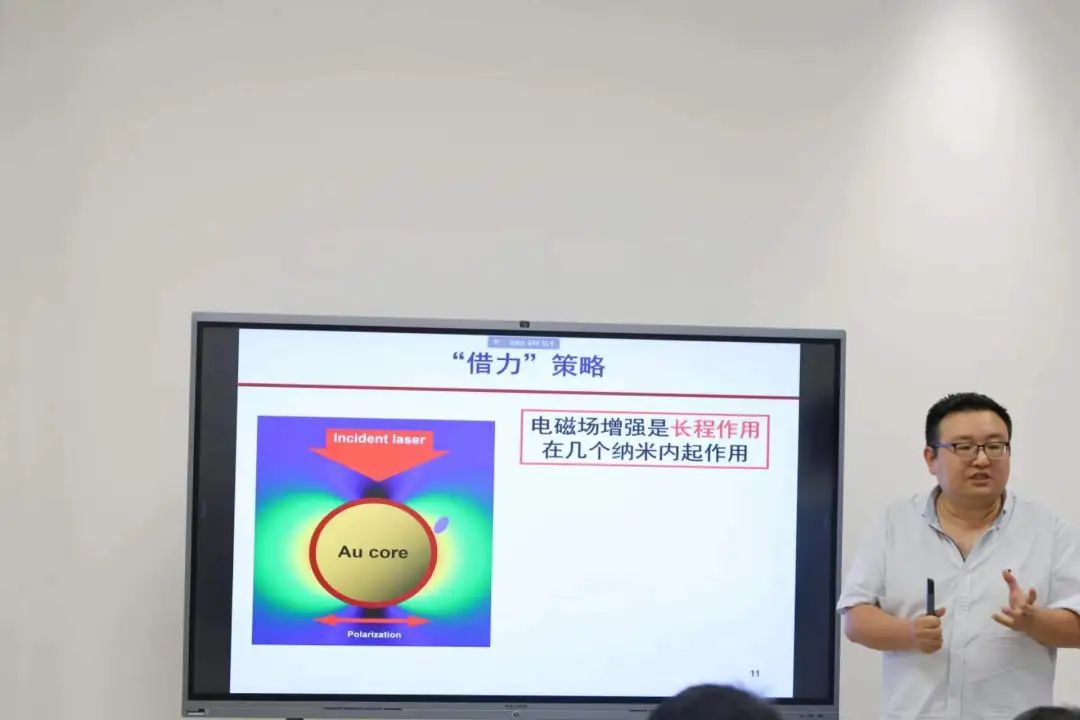 讲座中还介绍了用拉曼光谱进行食品、毒品、农药等领域的检测,利用壳层隔绝增强模式获得表面微量残留的检测。同时开展了新冠病毒和心梗领域的快速检测,自主研发了手持拉曼仪器,且实现多通道自动化检测,准确率高达99.5%。不仅将拉曼光谱应用于催化表界面理论研究,而且实现了实际样品的快速检测。