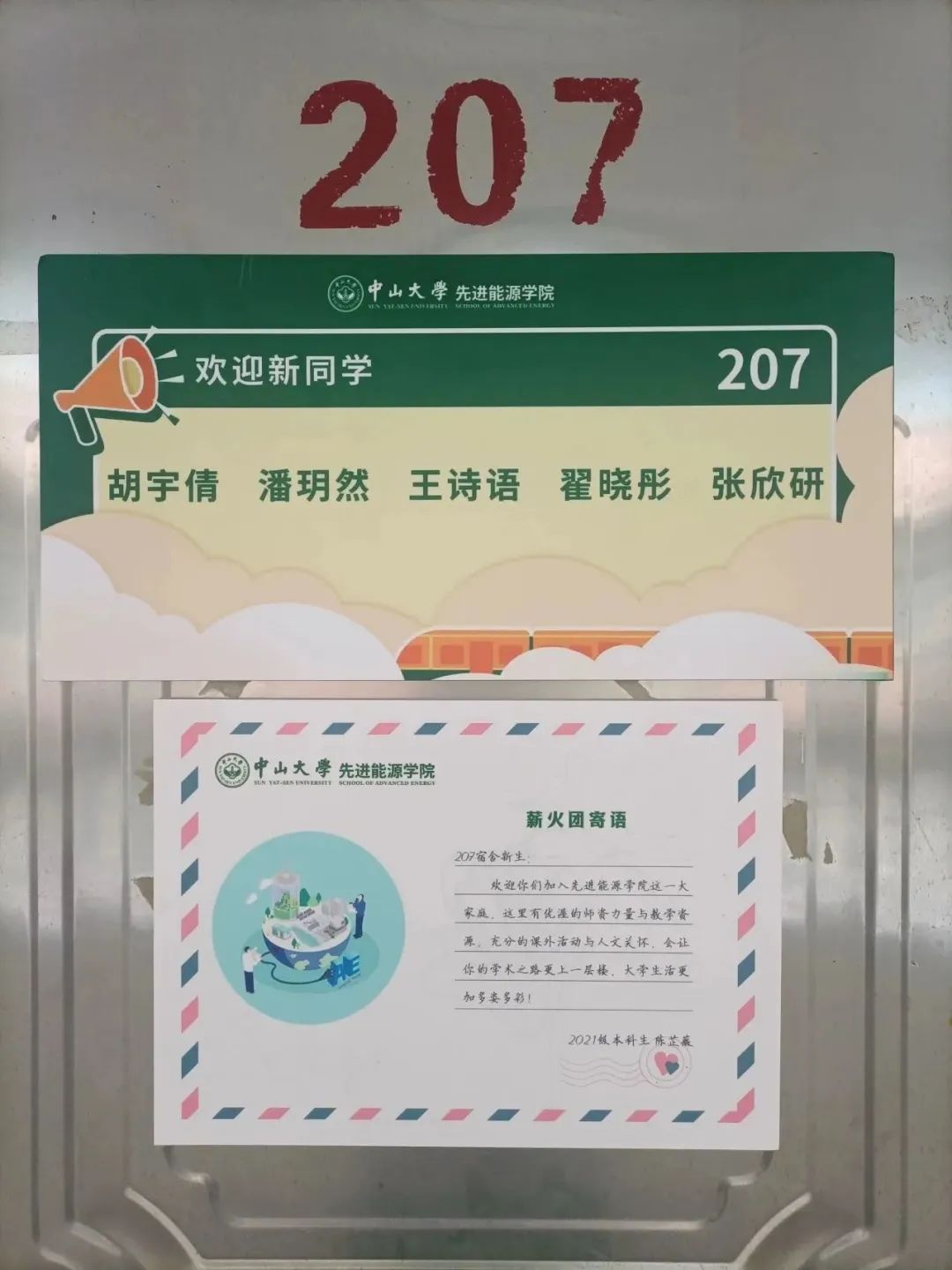 每个新生宿舍门上