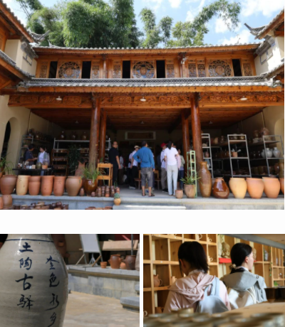 17日下午,实践团乘车抵达凤庆县勐佑镇,勐佑镇人大主席赵鸿同志热情接待了实践团,并带领实践团来到勐佑土陶传承体验馆参观。勐佑有悠久的土陶文化,是勐佑人赖以谋生的产业,更是勐佑茶马商旅文化符号。2019年,"勐佑土陶"已被凤庆县列入第三批非物质文化遗产名录。在这里,实践团参观了土陶传承体验馆体验中心、制坯专区、陶艺创作区、土陶晾晒区、土陶展示中心、龙窑六个区域,。了解了从泥胚到陶器的制作过程,观赏了多种土陶制品。