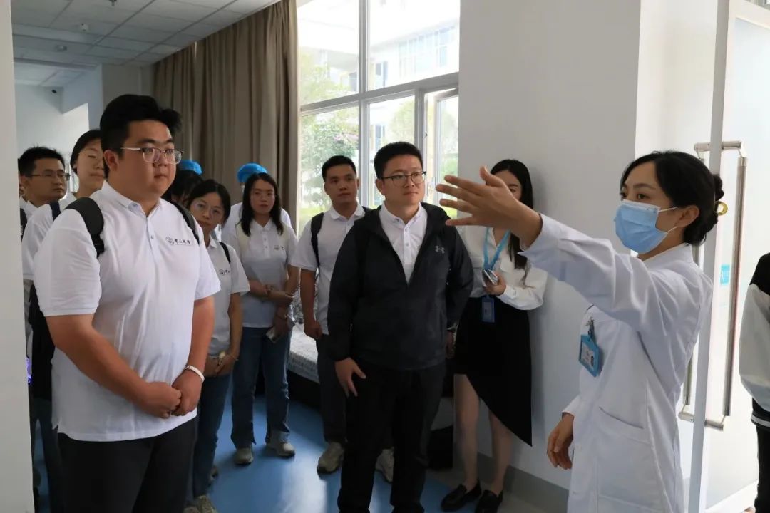 随后,师生们前往凤庆县人民医院南城新区新院区,开展走访调研。医院科教科周文娟老师代表医院,对实践团的到来表示欢迎。在不打扰医院正常医疗工作秩序的前提下,师生们参观了医学影像中心、医学检验科、技能培训中心等科室。目前凤庆县人民医院科室配备完整,硬件设施齐全,医疗器械种类繁多,可以满足日常诊断的需求。针对同学们关于群众就医体验的问题,周老师表示自新院区建成以来,就医环境了得到极大改善,智慧医疗、智慧药房等的应用,也使就医体验越来越好。同时,凤庆县人民医院与中山大学多家附属医院建立了长期的专家帮扶项目与远程会诊制度,让患者在基层卫生机构便可以享受到中山大学附属医院专家同质诊疗服务。中山大学附属第七医院在凤庆县人民医院设立何裕隆专家工作站,通过开展胃癌精准化“三位一体”防治模式项目,提升县域胃癌防治效果与医院的临床科研水平,通过合作,切实解决了群众看病难、专家少等问题,为患者提供更好的咨询、诊断、治疗方案,保障凤庆人民群众的生命健康。