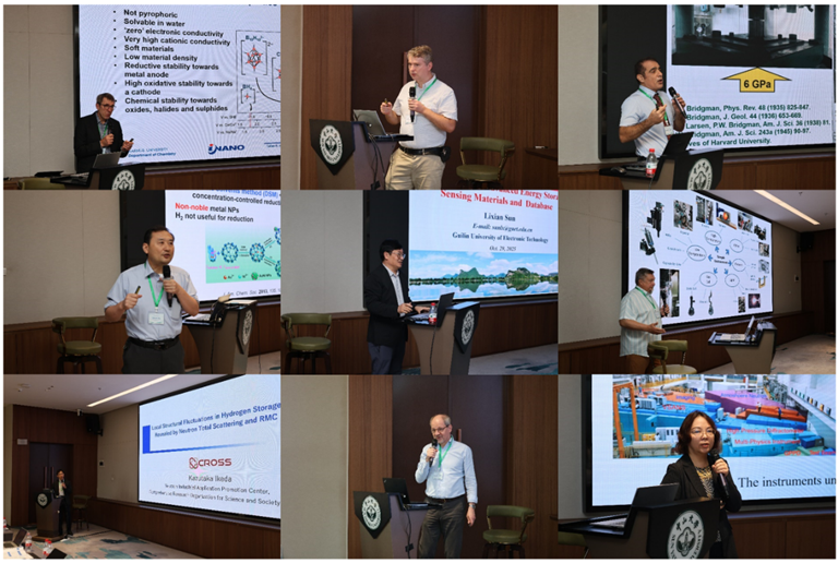 会议在学术交流层面成果显著。来自15个国家和地区的122位参会者中,包括55位分享报告的专家学者,其中8位发表大会报告,12位发表主旨报告,内容覆盖氢能制备、储存、应用,先进储能材料,以及氢能集成技术等关键议题。多位国际权威学者,如丹麦奥胡斯大学Torben Jensen教授、比利时鲁汶大学Yaroslav Filinchuk教授、日本九州大学Kaveh Edalati教授等,分享了在复合氢化物、高熵储氢材料、同步辐射与中子散射表征等方面的最新突破,展现了基础研究的国际前沿动向。国内顶尖专家如南方科技大学徐强教授、桂林电子科技大学孙立贤教授、华南理工大学欧阳柳章教授等,也围绕金属有机框架、等离子球磨技术、材料数据库等发表了深刻见解,体现了我国在相关领域的自主创新能力和科研高度。